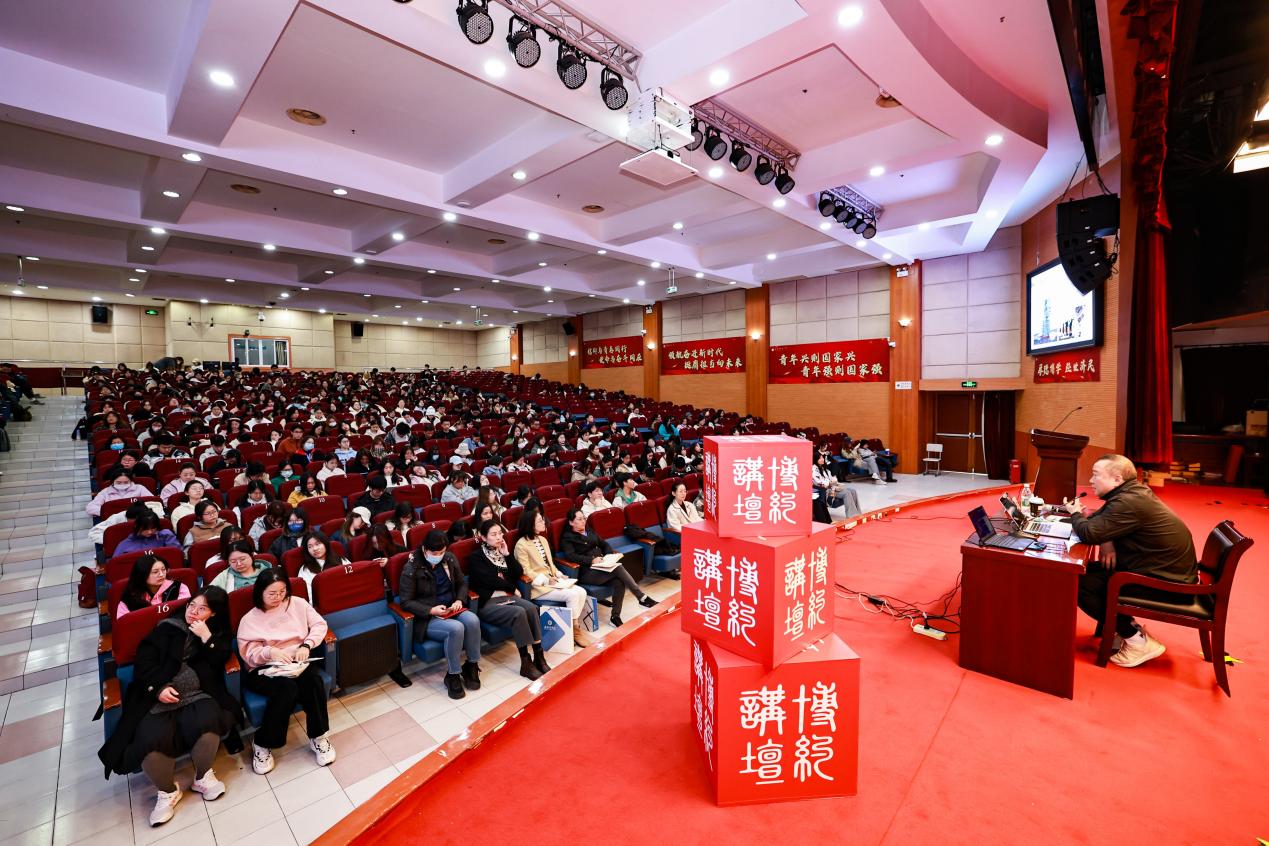 11月14日下午,由校团委主办、校学生会承办的第95期博·约讲坛在奉浦校区4号楼146报告厅举行。本次讲座特邀上海市文联副主席、上海电视艺术家协会主席滕俊杰教授为上商师生带来《创新的天空——以影视创作为例》的主题讲座。校党委副书记、副校长劳晓芸,学生工作部副部长、学生处副处长郁敏,校团委书记、学生工作部副部长余绘平,二级学院党总支副书记、团委书记、辅导员,校团委全体及600余名学生参与了此次讲座。讲座由校团委副书记卜树俊主持。
